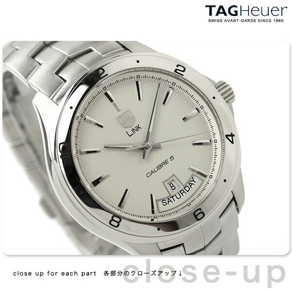 タグホイヤー 腕時計 メンズ 自動巻き キャリバー5 リンク デイデイト 42MM シルバー TAG Heuer WAT2011.BA0951 新品 リンクシリーズの自動巻きモデル。6時位置には、傾斜を持たせた個性的な日付・曜日表示窓とシルバーのエッジを配置。サテン仕上げ、ポリッシュ仕上げが施されたケース・バンドは美しい輝きを放ちます。シンプルながらも飽きのこないデザインは、日常使いはもちろん、ビジネスシーンやパーティーシーンでも活躍します。 機械式腕時計▼Tag Heuer■ PHOTO by nanaple品番WAT2011.BA0951駆動方式自動巻き(Cal.5)素材:ケースステンレススチール(サテン/ポリッシュ仕上げ)素材:ベルトステンレススチール(サテン仕上げ/特殊タイプ)風防ドーム型サファイアガラス(両面反射防止コーティング)文字盤カラーシルバーベルトカラーシルバーサイズ(縦×横×厚)約47×43×13mmベルト幅約19-20mmベルト腕周り最大約19cm重さ約163g仕様100m防水パワーリザーブ:約38時間日付・曜日表示固定ベゼルねじ込み式りゅうずバックスケルトン石数 25-26石スイス製付属品取扱説明書(日本語表記あり)・ギャランティーカードTag Heuerオリジナルボックス保証当店にて二年保証TAG Heuer の商品一覧はこちら♪